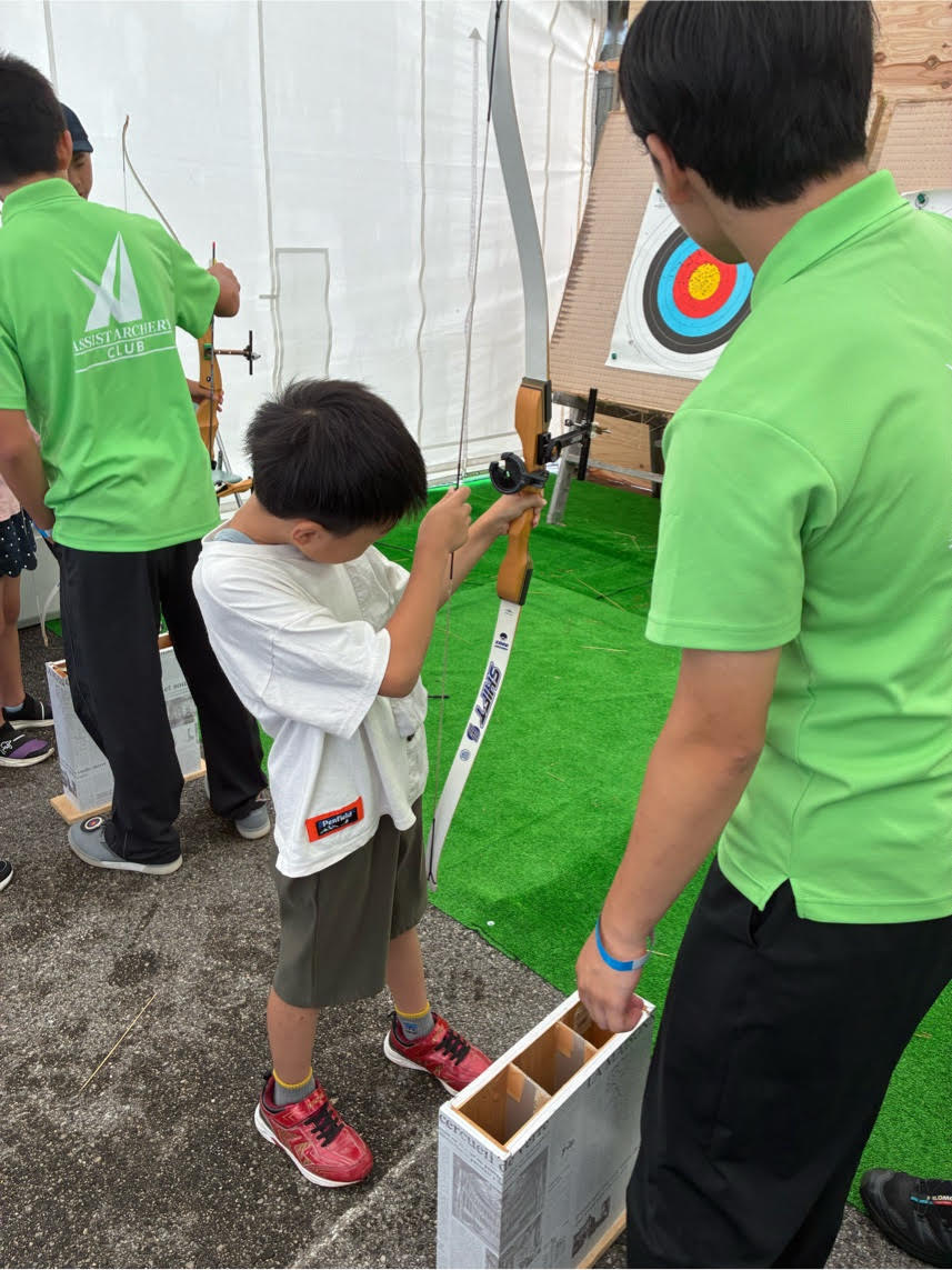 アーチェリー競技が近くで観戦でき、体験もできるとの事で子供達と一緒に行ってきましたよ(^^)/